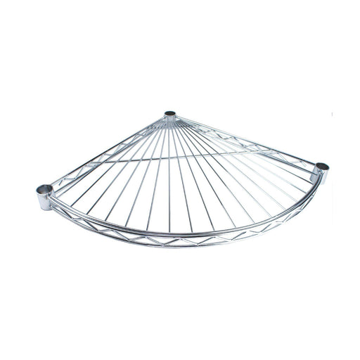 View full detailsIndividual quarter circle chrome wire shelf. Great for finishing ends or external corners. Quality chrome finish. Fits 25mm dia posts. Comes compl...