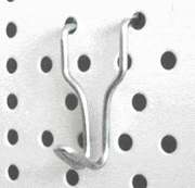 - Simple hook for peg panel that has loads of uses from hanging pictures to tools.