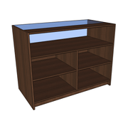 • Display counter with small display area and larger storage area.