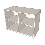 - Open storage to rear with vertical central divider and 1x adjustable shelf in each section to create 4 compartments.